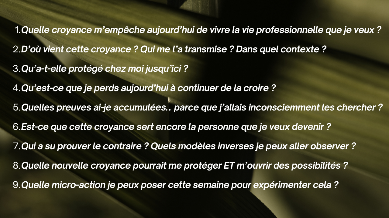 Le travail, c’est : comment créer une nouvelle croyance qui protège ce qui est important pour toi… tout en t’autorisant à avancer ?